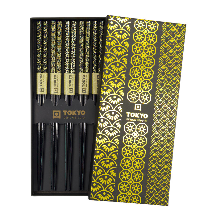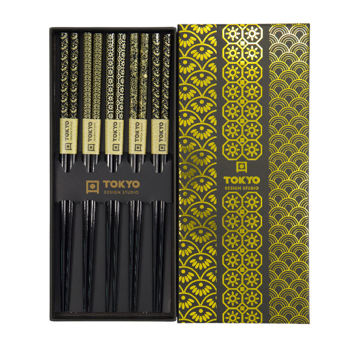 TDS, 5 Paar Essstäbchen, Geshenkset, Gold, Art.-Nr. 33621