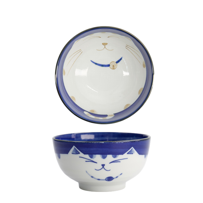 TDS, Rice Bowl, Kawaii Cat Neko, Blue, Ø 16 cm 800 ml - Item No. 2469