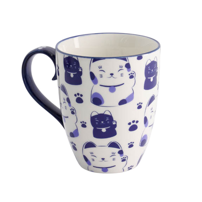 TDS, Kawaii Lucky Cat Mug W/Giftbox Blue Cat, 8.5x10.2cm, 380 ml, Item No. 21528