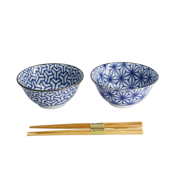 TDS, Mixed Tayo Bowl Giftset with chopsticks, 2 Pcs, Ø 15x7cm 500ml, Item No. 33815