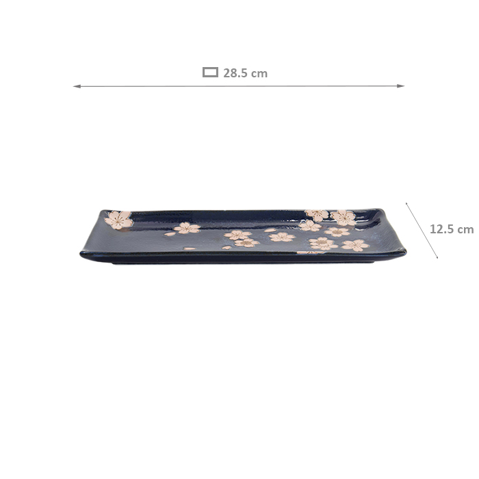 TDS, Rectangular Plate, Sakura, Navy, 28.5x12.5cm, Item No. 33490