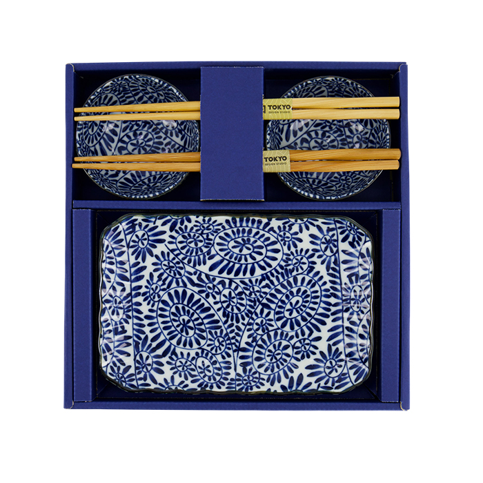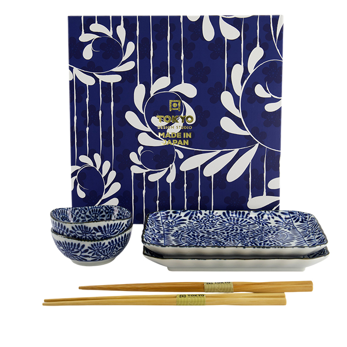 TDS, Sushi Set, Aizome Tako Karakusa, Giftset with Chopsticks, 6 pcs, Item No. 33713